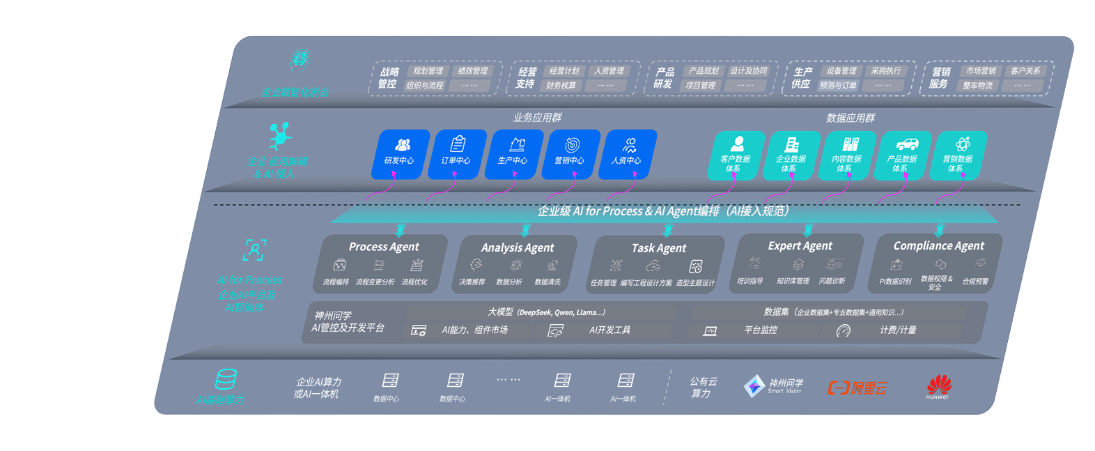 端到端的一站式AI工作空间深度融合了从企业战略规划到日常经营的全流程业务板块,,,定向解决车企内部领域多、、部门多、、链条长、、场景碎片化等难题,,,,支持车企快速构建以AI为核心的生产力写作体系,,,,实现任务执行与AI能力的无缝集成与交互